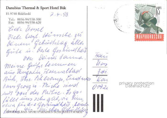 old postcard Buekfuerdoe Bad Buek Danubius Thermal Sport Hotel postalisch gelaufen Erhaltung siehe scans