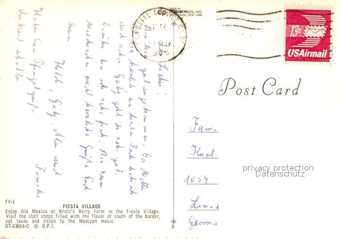 72926188 old postcard Buena Park Fiesta Village Knott’s Berry Farm postalisch gelaufen Erhaltung siehe scans [FriedD77] KatCode: 14140050000000