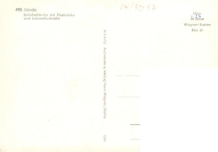 73886088 Buende Westfalen Bahnhofstrasse mit Elsebruecke und Laurentiuskirche postalisch nicht gelaufen Erhaltung siehe scans [FriedD77] KatCode: 11110005758004