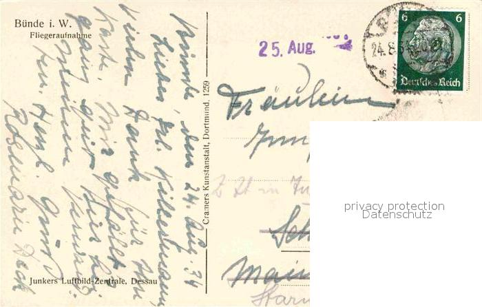 32657334 alte Postkarte Buende Westfalen Fliegeraufnahme postalisch gelaufen Erhaltung siehe scans [AndreD76] KatCode: 11110005758004