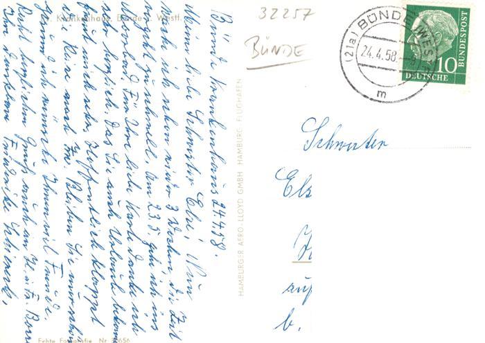 73874703 alte Postkarte Buende Westfalen Krankenhaus Fliegeraufnahme postalisch gelaufen Erhaltung siehe scans [WerneD78] KatCode: 11110005758004