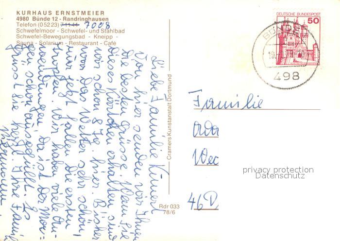 73722552 alte Postkarte Buende Westfalen Kurhaus Ernstmeier Teilansichten postalisch gelaufen Erhaltung siehe scans [LiesaD40] KatCode: 11110005758004