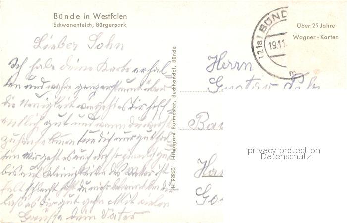 73777680 Buende Westfalen Schwanenteich Buergerpark postalisch nicht gelaufen Erhaltung siehe scans [WerneD78] Wern Katcode 11110005758004