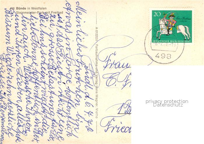 73000964 alte Postkarte Buende Westfalen Steinmeister Park Freibad postalisch gelaufen Erhaltung siehe scans [AndreD76] KatCode: 11110005758004