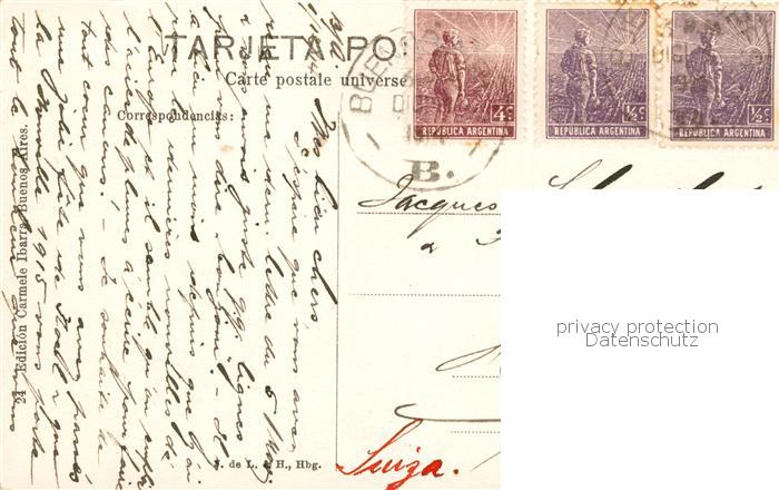 73832598 old postcard Buenos Aires Argentina Fuente Lola Mora postalisch gelaufen Erhaltung siehe scans [WerneD78] KatCode: 17020
