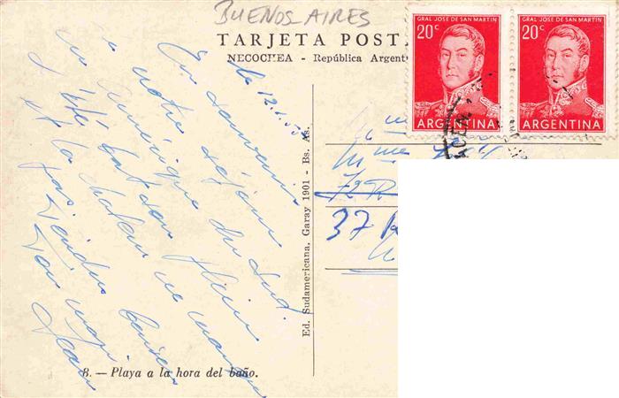 73973479 old postcard Buenos Aires Argentina Playa a la hora del bano postalisch gelaufen Erhaltung siehe scans [FriedD77] KatCode: 17020