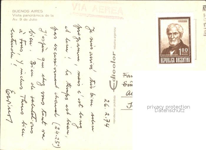 old postcard Buenos Aires Strasse des 9. Juli postalisch gelaufen Erhaltung siehe scans