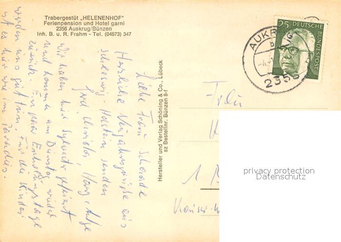 73642646 alte Postkarte Buenzen Aukrug Trabergestuet Ferienpension Helenenhof postalisch gelaufen Erhaltung siehe scans [WerneD78] KatCode: 11110001058009