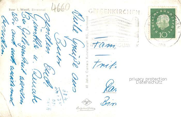 73691599 alte Postkarte Buer Gelsenkirchen Ehrenmal postalisch gelaufen Erhaltung siehe scans [WerneD78] KatCode: 11110005513000