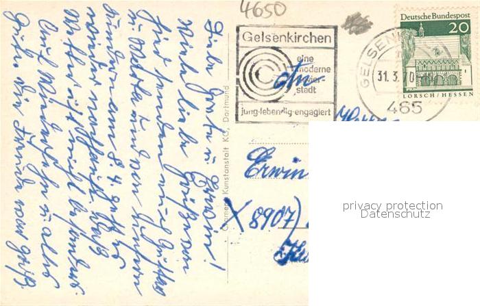 73691594 alte Postkarte Buer Gelsenkirchen Rathaus Busbahnhof Schloss Berge Bergersee Terrassengarten Post postalisch gelaufen Erhaltung siehe scans [WerneD78] KatCode: 11110005513000
