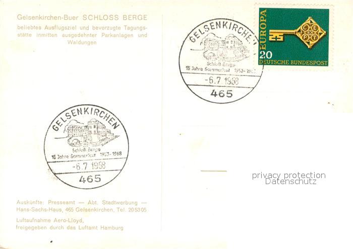 73746339 alte Postkarte Buer Gelsenkirchen Schloss Berge Parkanlagen Fliegeraufnahme postalisch gelaufen Erhaltung siehe scans [FriedD77] KatCode: 11110005513000
