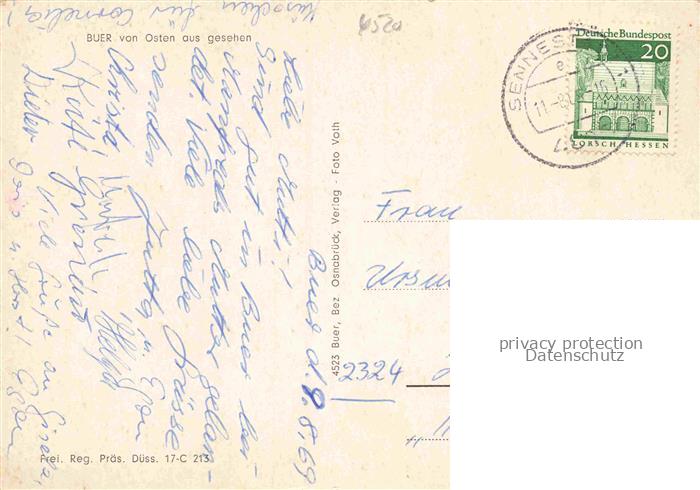 34146257 alte Postkarte Buer Wiehengebirge Melle Niedersachsen Panorama postalisch gelaufen Fliegeraufnahme Erhaltung siehe scans [FriedD77] KatCode: 11110003459024
