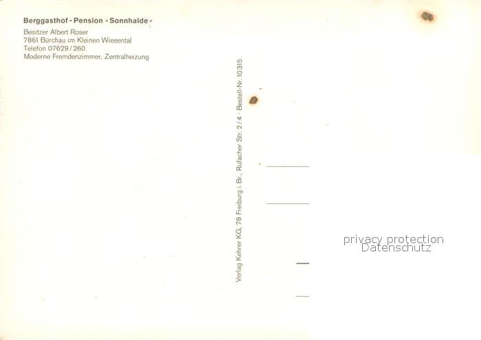 73623576 Buerchau Berggasthof Pension Sonnhalde postalisch nicht gelaufen Erhaltung siehe scans [WerneD78] KatCode: 11110008336012