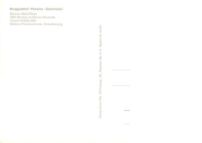 73908720 Buerchau Berggasthof Pension Sonnhalde postalisch nicht gelaufen Erhaltung siehe scans [WerneD78] KatCode: 11110008336012