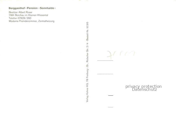 74022248 Buerchau Panorama Berggasthof Pension Sonnhalde im Schwarzwald postalisch nicht gelaufen Erhaltung siehe scans [FriedD77] KatCode: 11110008336012