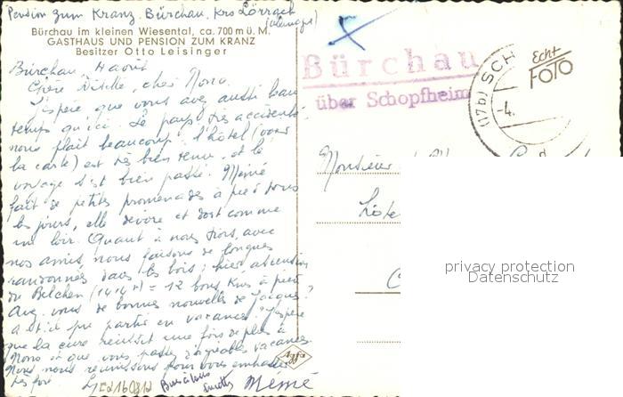 31705733 alte Postkarte Buerchau Panorama Kleines Wiesental Gasthaus Pension zum Kranz postalisch gelaufen Erhaltung siehe scans KatCode: 11110008336012