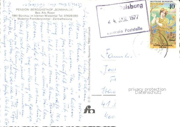 72200879 alte Postkarte Buerchau Pension Berggasthof Sonnhalde postalisch gelaufen Erhaltung siehe scans KatCode: 11110008336012