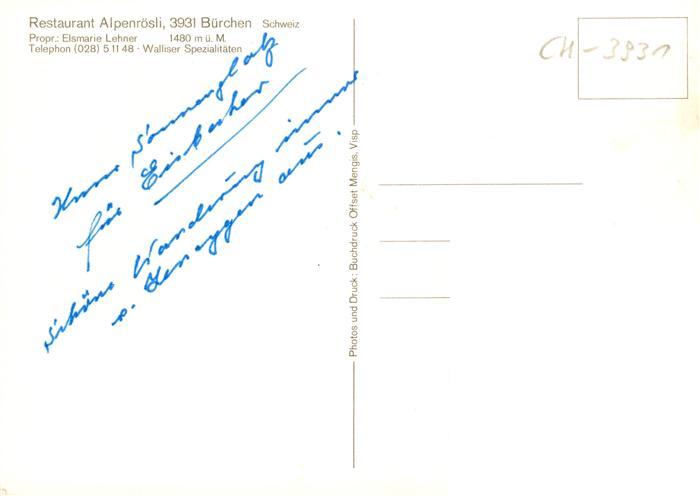 13895975 Buerchen VS Restaurant Alpenroesli Gastraeume Terrasse postalisch nicht gelaufen Erhaltung siehe scans [WerneD78] KatCode: 11470230730530