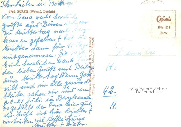 73645739 alte Postkarte Bueren Westfalen Fliegeraufnahme postalisch gelaufen Erhaltung siehe scans [WerneD78] KatCode: 11110005774016