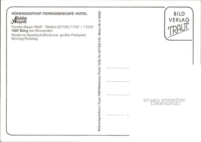 72466968 Buerg Winnenden Hoehengasthof Terrassencafe Hotel Schoene Aussicht postalisch nicht gelaufen Erhaltung siehe scans KatCode: 11110008119085