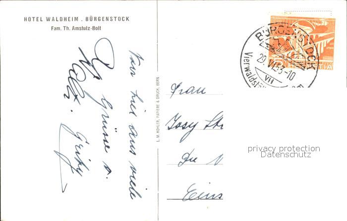 11739297 alte Postkarte Buergenstock Hotel Waldheim postalisch gelaufen KatCode: 11470140435276