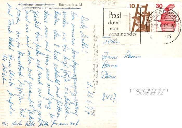 73854532 alte Postkarte Buergstadt Main Panorama Erftal Gasthaus zum Anker Rathaus postalisch gelaufen Erhaltung siehe scans [WerneD78] KatCode: 11110009676116