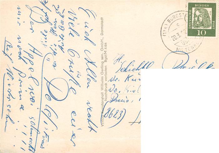73924591 alte Postkarte Buergstadt Main Panorama Rathaus Ortspartie postalisch gelaufen Erhaltung siehe scans [WerneD78] KatCode: 11110009676116