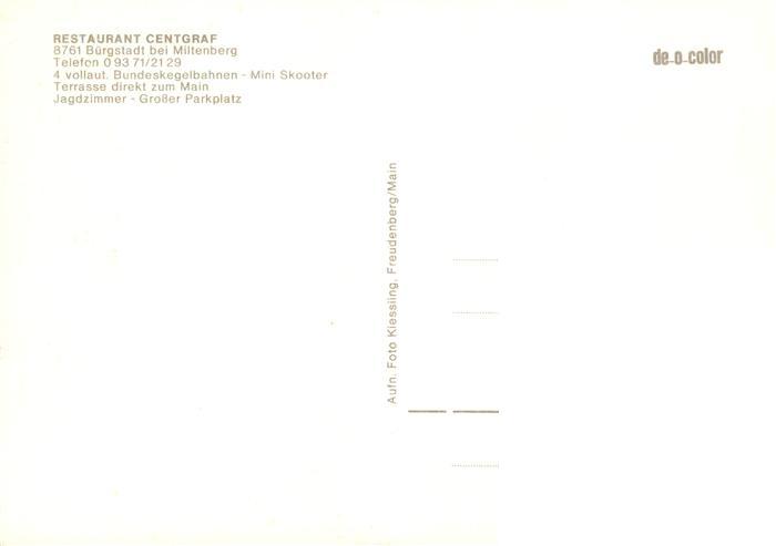 73900736 Buergstadt Main Restaurant Centgraf Gastraeume Kegelbahn postalisch nicht gelaufen Erhaltung siehe scans [WerneD78] KatCode: 11110009676116