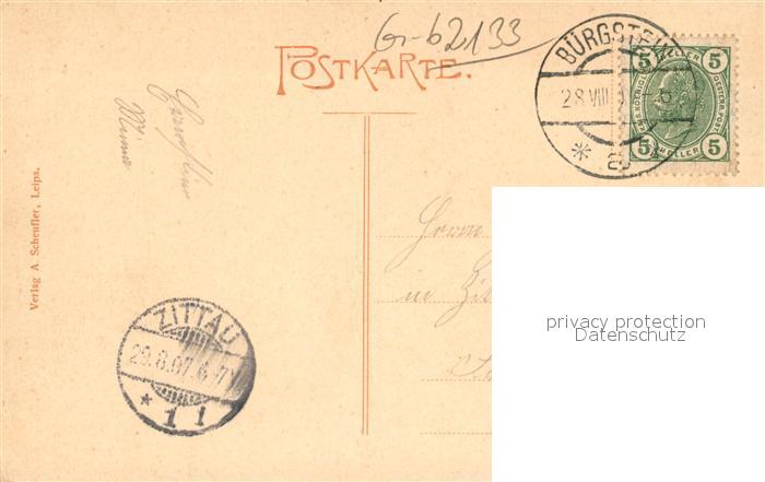 old postcard Buergstein Tschechien Einsiedlerstein postalisch gelaufen Erhaltung siehe scans [PaolaD17]