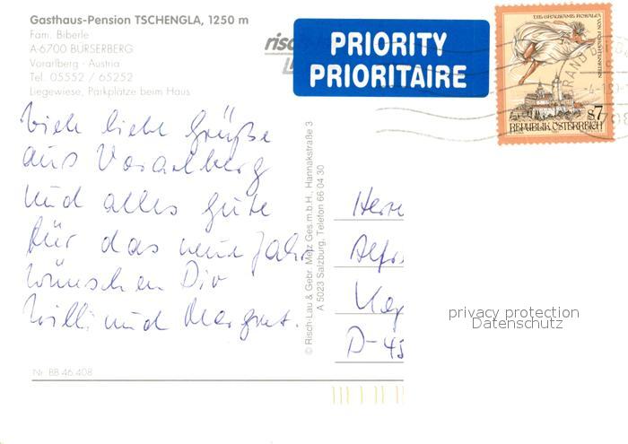 73231684 alte Postkarte Buerserberg Vorarlberg Gasthaus Pension Tschengla Winterlandschaft Alpenpanorama postalisch gelaufen Erhaltung siehe scans [FriedD77] KatCode: 11390341080107