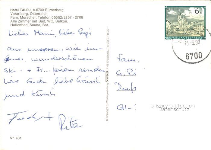 72220674 alte Postkarte Buerserberg Vorarlberg Hotel Taleu im Winter Alpenpanorama postalisch gelaufen Erhaltung siehe scans KatCode: 11390341080107