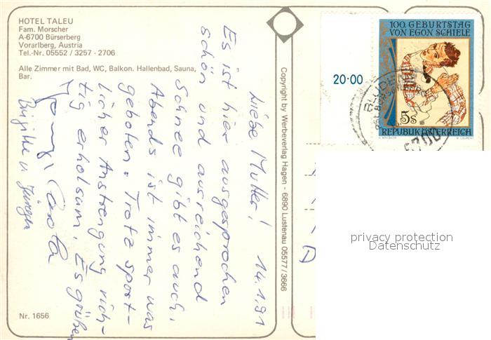 13326219 alte Postkarte Buerserberg Vorarlberg Hotel Taleu Winter postalisch gelaufen Erhaltung siehe scans [KathaD81] KatCode: 11390341080107