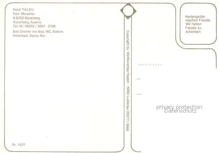 73482943 Buerserberg Vorarlberg Hotel Taleu Winter Nachtaufnahme postalisch nicht gelaufen Erhaltung siehe scans [KathaD81] KatCode: 11390341080107