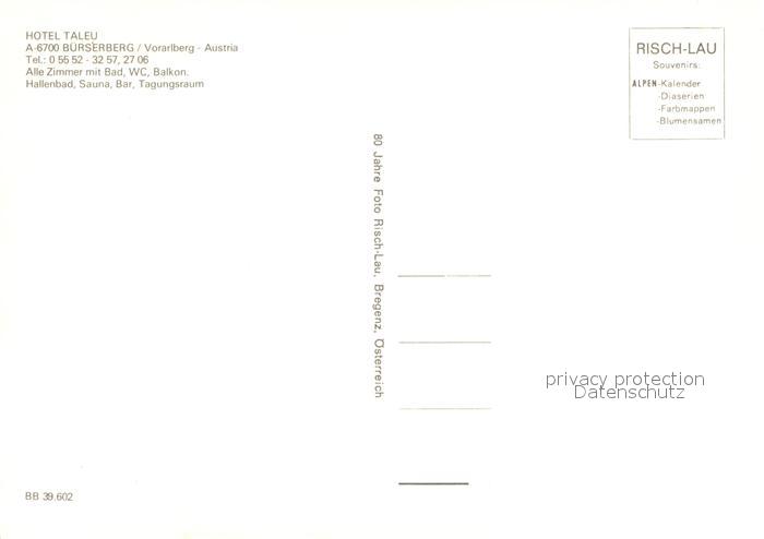 73482929 Buerserberg Vorarlberg Hotel Taleu Winter postalisch nicht gelaufen Erhaltung siehe scans [KathaD81] KatCode: 11390341080107