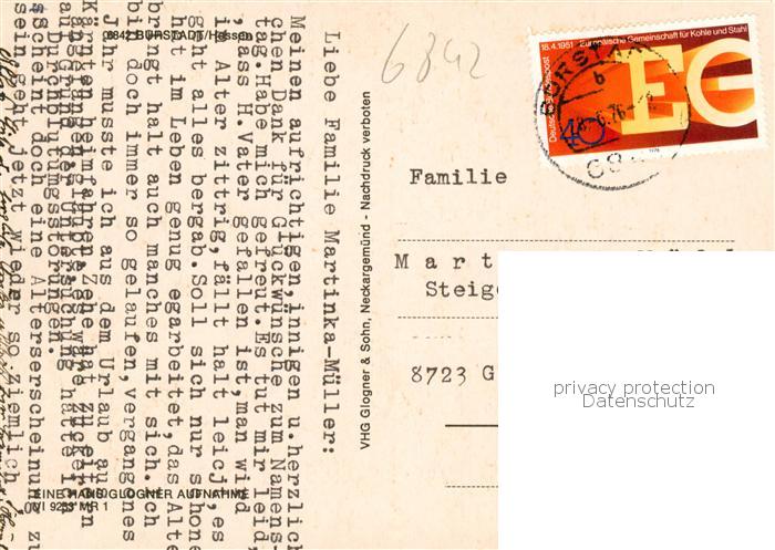 73865702 alte Postkarte Buerstadt Ortsansichten Kirche Freibad Parkanlagen Wasserspiele postalisch gelaufen Erhaltung siehe scans [FriedD77] KatCode: 11110006431005
