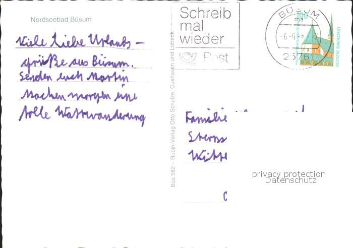 72367106 alte Postkarte Buesum Nordseebad Alter Hafen Korbstrand Fischereihafen Segelboot Luftaufnahme postalisch gelaufen Erhaltung siehe scans KatCode: 11110001051013