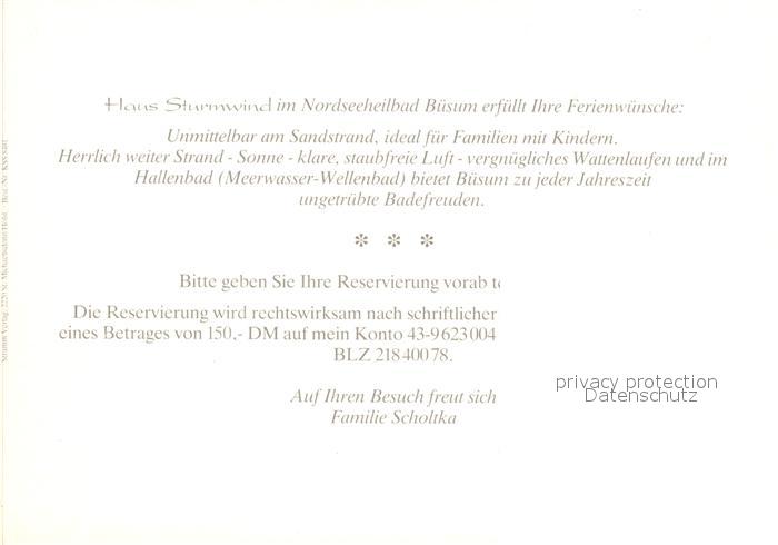 73086293 Buesum Nordseebad Appartements Haus Sturmwind postalisch nicht gelaufen Werbekarte (keine Postkarte) Erhaltung siehe scans [KathaD81] KatCode: 11110001051013