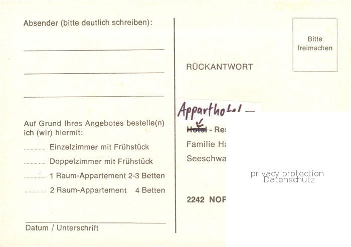 73086295 Buesum Nordseebad Apparthotel Restaurant Zum Seeadler postalisch nicht gelaufen Werbekarte (keine Postkarte) Erhaltung siehe scans [KathaD81] KatCode: 11110001051013