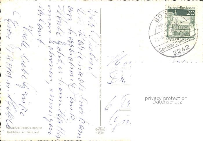 72445852 alte Postkarte Buesum Nordseebad Badefreuden am Suedstrand Leuchtturm postalisch gelaufen Erhaltung siehe scans KatCode: 11110001051013