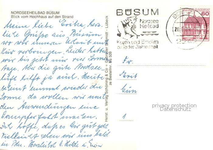 73779162 alte Postkarte Buesum Nordseebad Blick vom Hochhaus auf den Strand postalisch gelaufen Erhaltung siehe scans [WerneD78] KatCode: 11110001051013