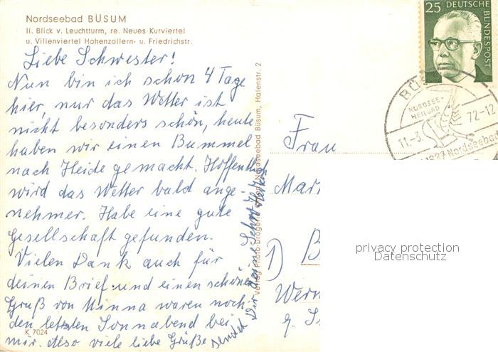73768230 alte Postkarte Buesum Nordseebad Blick vom Leuchtturm Neues Kurviertel Villenviertel Hohenzollern und Friedrichstrasse postalisch gelaufen Erhaltung siehe scans [WerneD78] KatCode: 11110001051013