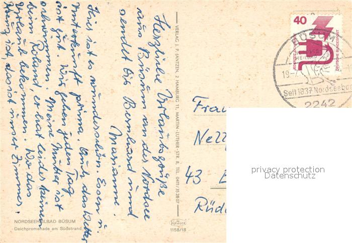 73293615 alte Postkarte Buesum Nordseebad Deichpromenade am Suedstrand Wappen postalisch gelaufen Erhaltung siehe scans [FriedD77] KatCode: 11110001051013
