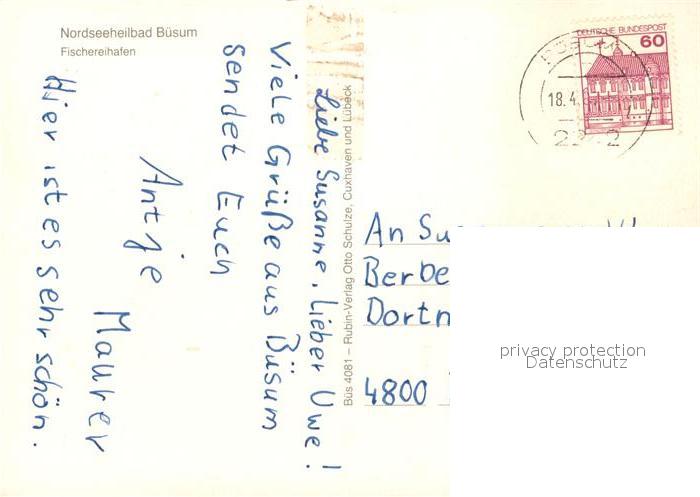 73159638 alte Postkarte Buesum Nordseebad Fischereihafen postalisch gelaufen Erhaltung siehe scans [FriedD77] KatCode: 11110001051013