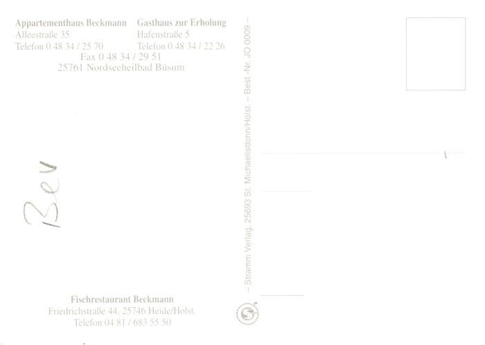 73944126 Buesum Nordseebad Fischrestaurant Beckmann Heide Friedrichstrasse Buesum Alleestrasse Anleger Hafenstrasse postalisch nicht gelaufen Erhaltung siehe scans [WerneD78] KatCode: 11110001051013