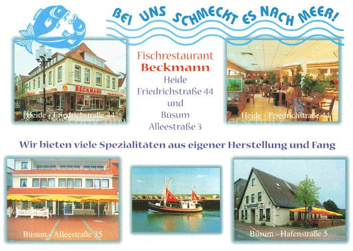 74120474 BueSUM Nordseebad Fischrestaurants in Heide Friedrichstrasse Alleestrasse und Hafenstrasse Fischkutter postalisch nicht gelaufen Erhaltung siehe scans [WerneD78] Wern Katcode 11110001051013