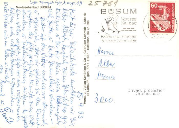 73124063 alte Postkarte Buesum Nordseebad Fliegeraufnahme postalisch gelaufen Erhaltung siehe scans [NatalD47] KatCode: 11110001051013