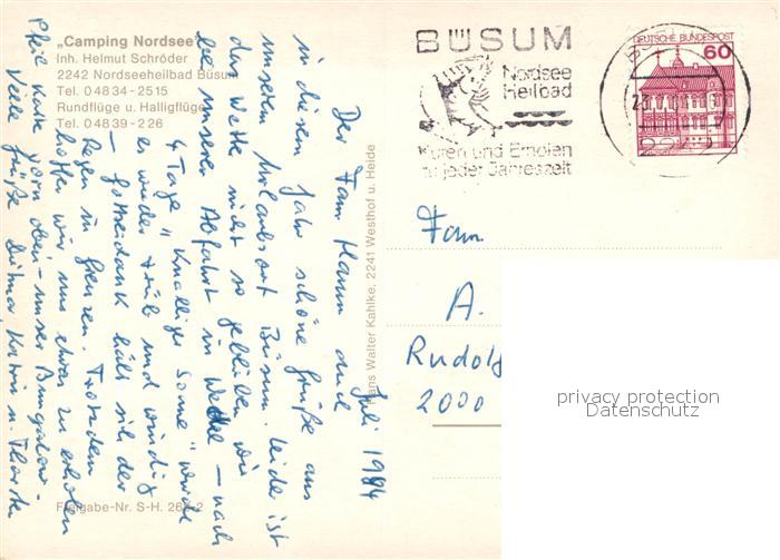 73580729 alte Postkarte Buesum Nordseebad Fliegeraufnahme Camping Nordsee postalisch gelaufen Erhaltung siehe scans [KathaD81] KatCode: 11110001051013