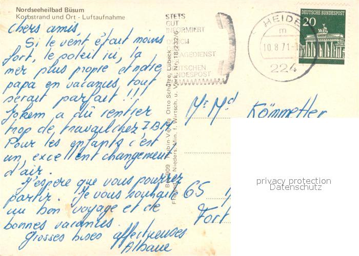 73613492 alte Postkarte Buesum Nordseebad Fliegeraufnahme Korbstrand postalisch gelaufen Erhaltung siehe scans [LiesaD40] KatCode: 11110001051013