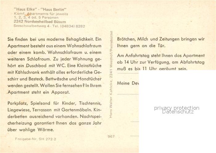 73730334 Buesum Nordseebad Fliegeraufnahme mit Haus Elke und Haus Berlin postalisch nicht gelaufen Werbekarte (keine Postkarte) Erhaltung siehe scans [WerneD78] KatCode: 11110001051013