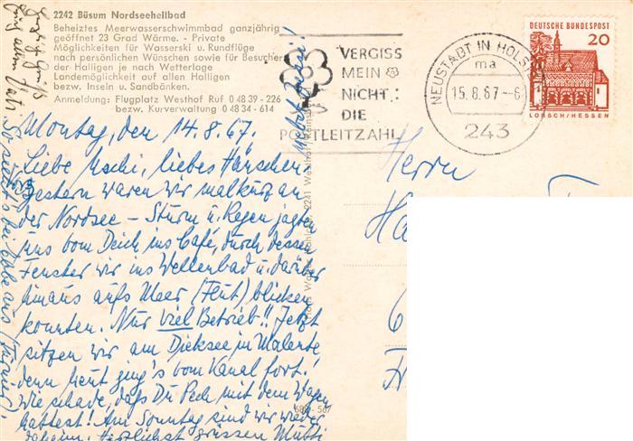 73873296 alte Postkarte Buesum Nordseebad Fliegeraufnahme mit Meerwasserschwimmbad postalisch gelaufen Erhaltung siehe scans [WerneD78] KatCode: 11110001051013
